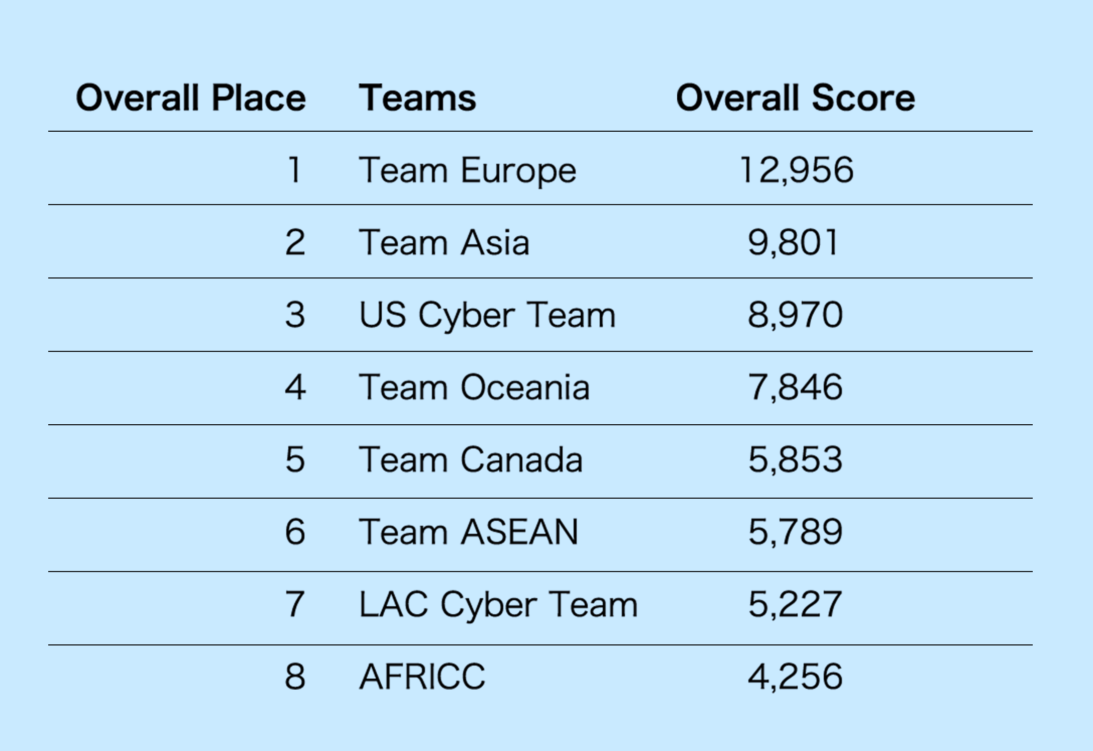 | Overall Place |